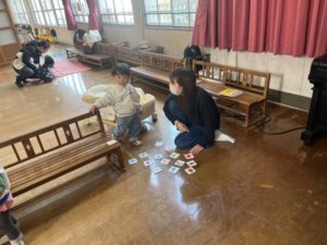今日は新しい年を迎えて、初めてのちゅうりっぷ組でした。みんなでお参りと新年のご挨拶をした後に、『かるた遊び』をしました♪絵札を見つけて、お家の人に褒めて貰うととっても嬉しそうな子ども達でしたね♡