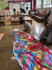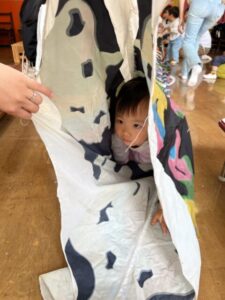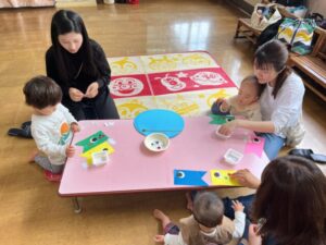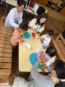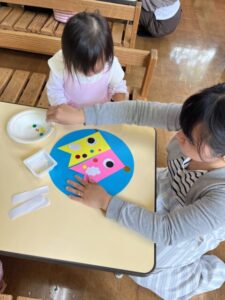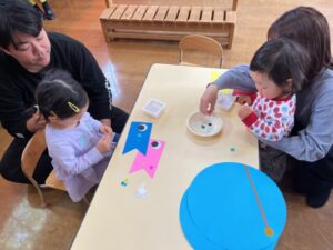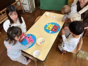 今日は、こいのぼり製作をしました☺シールをたくさん貼って、とても可愛らしいこいのぼりが出来ましたよ♡その後は、大きなこいのぼりを出して、近くで見たり、触ったり、こいのぼりのトンネルをくぐってみたりして遊びました♪楽しかったね☆